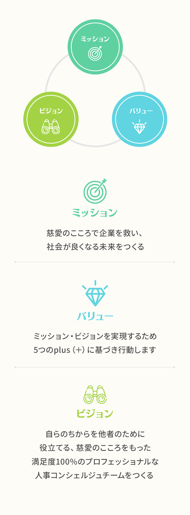 わたしたちは人事コンシェルジュとして慈愛のこころをもって会社様に真に寄り添い、企業様のお困りごとの根本解決のご支援をとおして、人と組織が生き生きとし、企業様がよりよくなるご支援をいたします。
